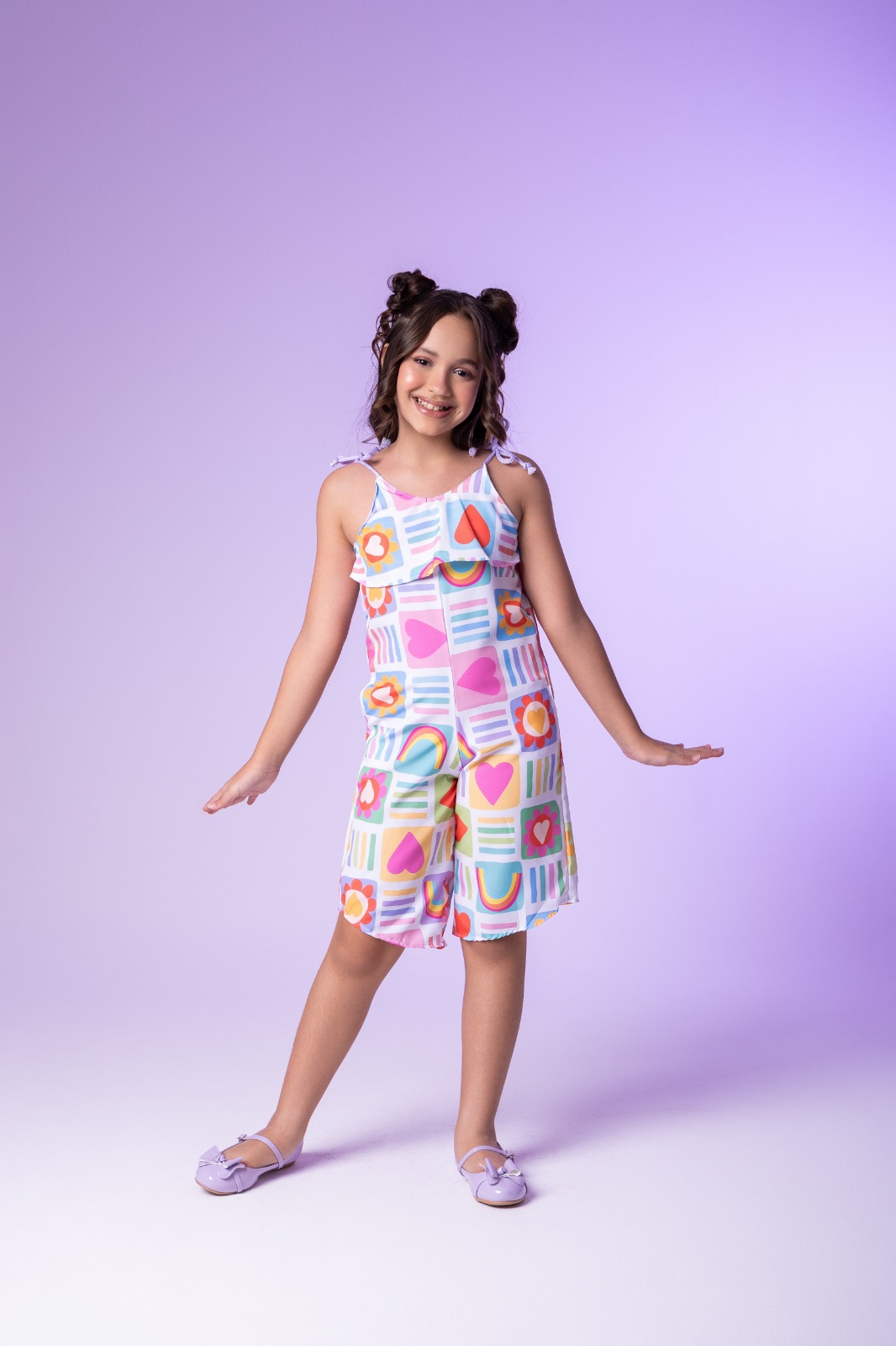 Prepare-se para o look mais refrescante da estação! Nosso macaquinho traz uma explosão de cores quentes e elementos lúdicos que são a cara das férias. Com um caimento leve e fluido, ele garante que a diversão não pare.